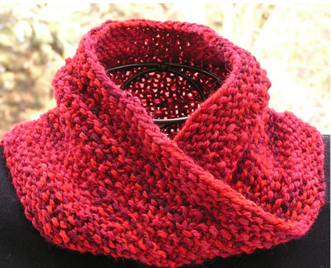 It’s a luxurious, warm cowl that is 7” wide x 26” in circumference and a very rewarding knit.The Moebius has a 180-degree twist, which is created at the special cast on, and join. Rounds of knitting grow from the center of the work to the outsides.